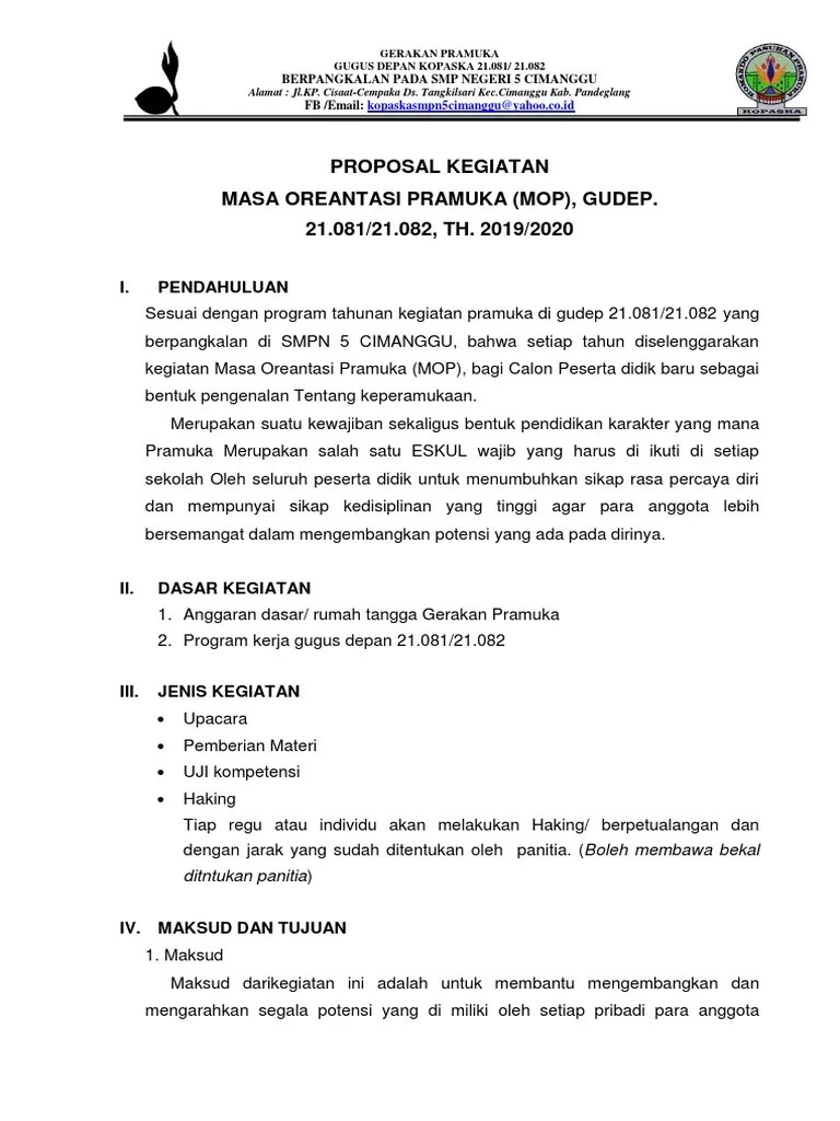 Contoh proposal kegiatan persami (perkemahan sabtu minggu) lengkap dengan lampiran.