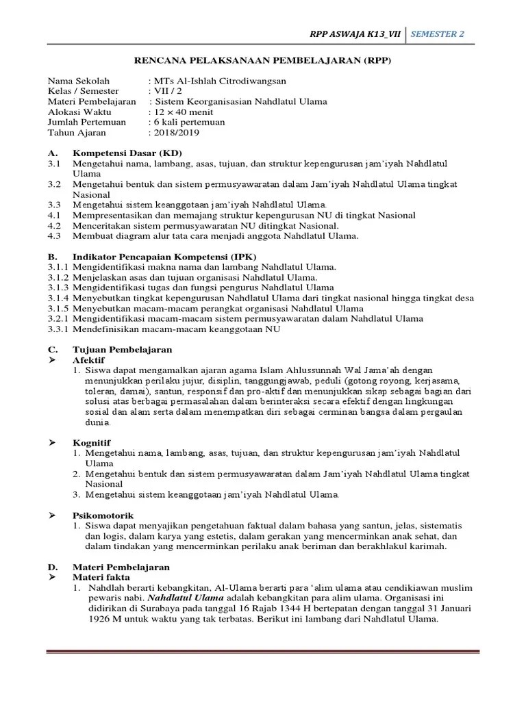 Download rpp aswaja ma k13. Buku induk kurikulum 2013 sd smp sma smk k13 & ktsp dan cd rpp k1. Rpp 1 lembar smp/mts kelas 7, 8, 9 lengkap kurikulum 2013 semester 1 dan 2 (revisi. Ke nu an/aswaja merupakan mata pelajaran muatan lokal yang diselenggarakan oleh sekolah/madrasah seluruh indonesia yang berada di bawah . Kurikulum darurat masa pandemi covid 19 jenjang sd , smp , sma, smk.